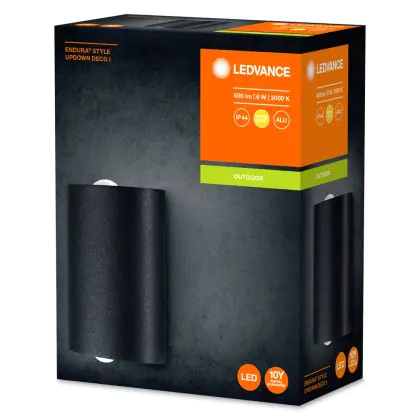 Beschrijving Ledvance Endura Stijl Alu Deco Wandlamp Donker Grijs Up & Down 6W 280lm - 830 Warm Wit