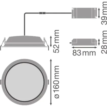 Beschrijving Ledvance LED Downlight Alu DN150 14W 1190lm 100D - 830 Warm Wit | 160mm - IP44 - Dali Dimbaar