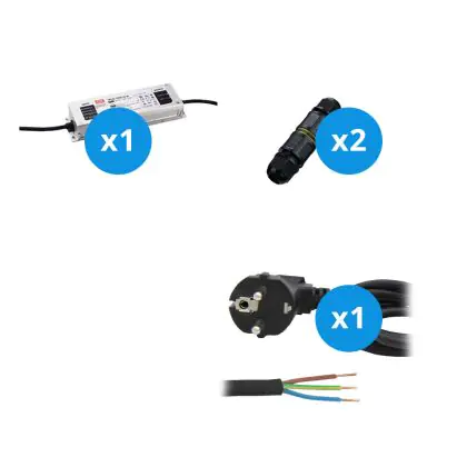 Mean Well Driver | XLG320VA | IP65 | 24V | 320W + Aansluitsnoer 2m met Aarde en Waterdicht Verbindingsstuk